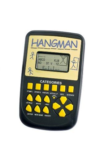 This Classic Hangman Game contains over - 6,000 Word Vocabulary6 Different Categories include: Sports, Science, History, Arts & Lit., Geography, and EntertainmentHandheld game trains your brain and expands your vocabularyAuto shut off3 skill levels with hints availableBattery: 2 x AAA (batteries included)